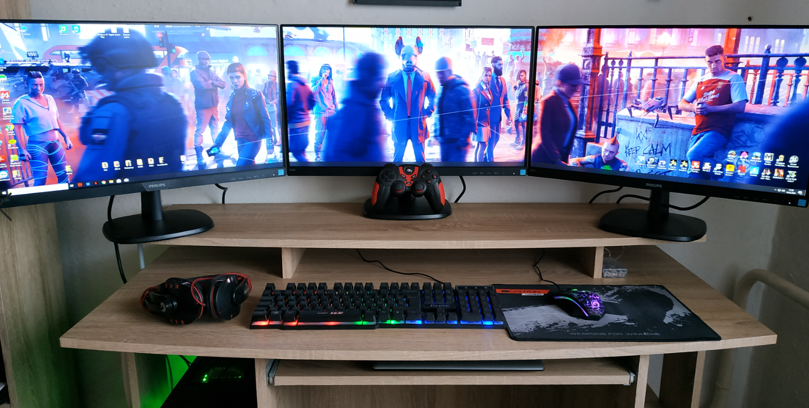 Je to drahé a navíc RX 580 určitě nezvládne rozlišení na tři monitory ve slušných FPS.
