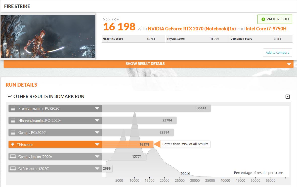 Osobně jsem podrobil tento notebook testu Time Spy a Fire Strike na 3DMark a zde jsem dosáhl velmi dobrých výsledků, ostatně můžete posoudit samy podle screenshotů. U notebooku je možnost nastavení primárního zaměření na výkon, tichost či chlazení. Dále se zde nachází i spousta módů jako je OC, Gaming či Silent a samozřejmě i individuální. Po vyzkoušení mohu říct, že tyto módy mají vliv na výkon, ale dle mého zjištění není tak rapidní.