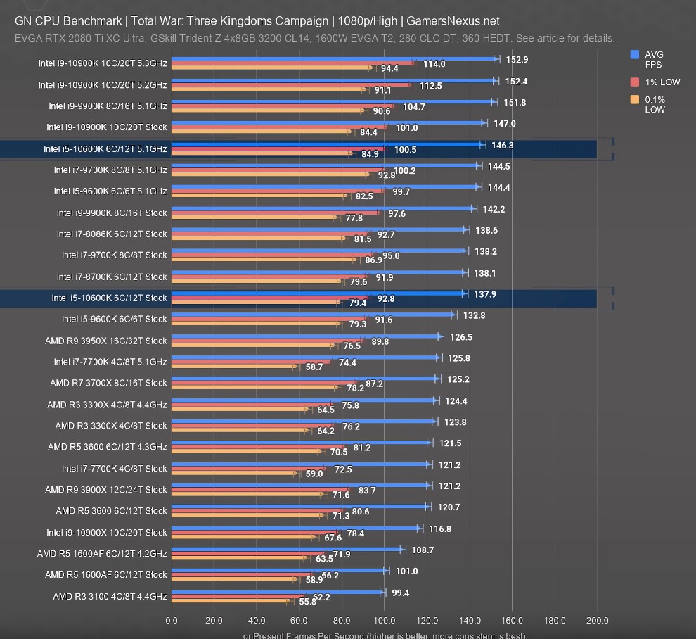 a k tomu i5 10600K a HT, mrkni na tenhle graf z Total War: Three Kingdoms