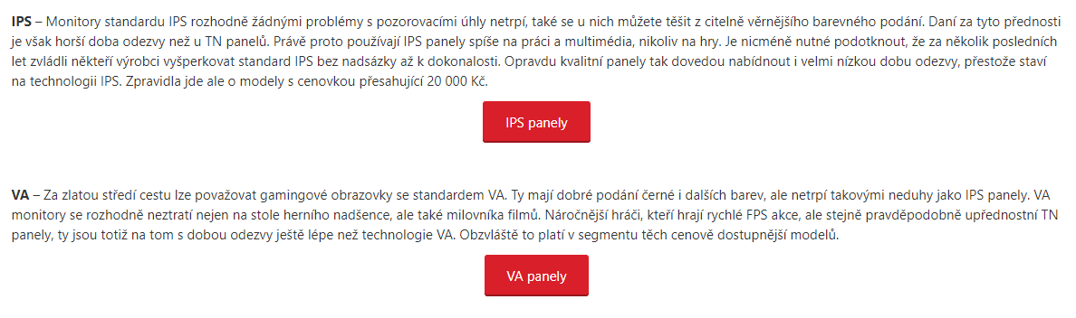 jj na czc napíšou to, tak, aby prodali to, co jim tam leží ... asi hodně stará záležitost ... dneska koupíš rychlý ips za 4 tisíce, resp. 7 za 1440p, s gsync pak od 10 tisíc ... va jsou levnější, protože ... pro mě je va panel moc přebarvený, nerealistický, někomu to možná vyhovuje ...