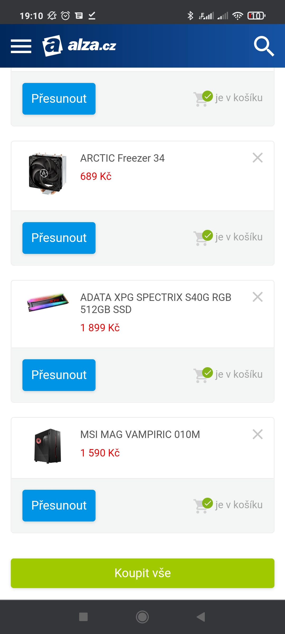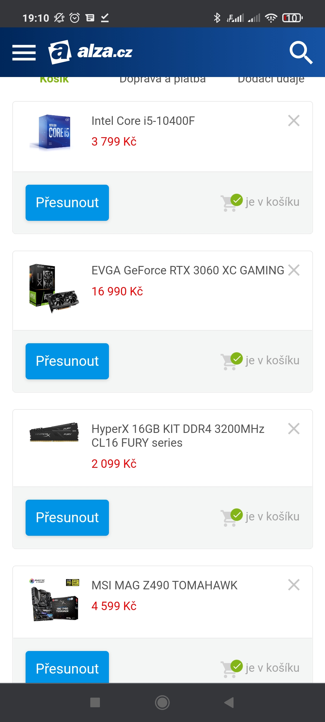 Jasný, je tam jenom kvůli tomu, že na CZC není 10400f skladem, tak mi tam nešla dát;)Michael850 píše:No tu i5 vem určitě levnější tu 10400F, místo předřazeného o nic výkonnější 10500