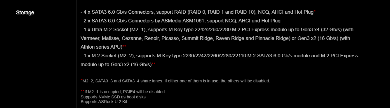 mám desku asrock b450 Pro4 mám jí osazenou jedním SSD poze 256 GB chtěl bych koupit větší ale mám otázku zda bude novější disk kompatibilní s deskou když na desce na slotu je napsáno PCIe 3.0 4x NVMe ale koupil bych disk s PCIe 4.0 4x NVMe. A dále má deska 2 sloty na SSD nemá někdo zkušenost co se bude dít když bych to menší SSD zapojil do toho druhého slotu. Podle popisu základní desky jsem to pochopil skoro jako by při obsazení druhého SSD měla být odpojena ostatní SATA jde mi o to že mám připojené do pc další dva klasické disky na portu SATA3_1 a SATA3_2 a na SATA 3_3 a SATA3_4 mám připojenou DVD a CD rom takže bych přišel o DVD a CD rom pokud chápu dobře. Předem děkuji za jakoukoliv radu v příloze je screenshot z popisu desky na stránkách výrobce