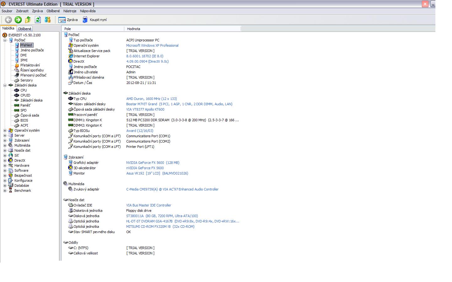 Současnou konfiguraci přikládám v příloze. PC v současné době funguje poměrně dobře a je vyčištěno od veškerého balastu a slouží jen k "internetování", ale např. při práci s více okny v prohlížeči se už projevuje jeho slabá konfigurace a znatelně se zpomaluje.
