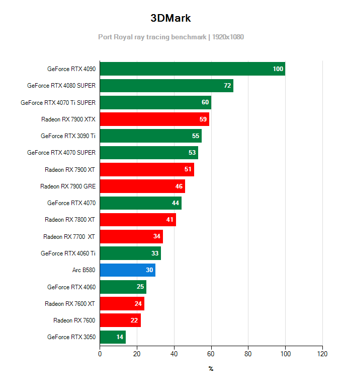 Pro představu dva grafy z webu GPUreport. Na prvním jsou průměrné fps v rozlišení 2560x1440 - z výběru her, na druhém průměrné fps z ray tracingového benchmarku.