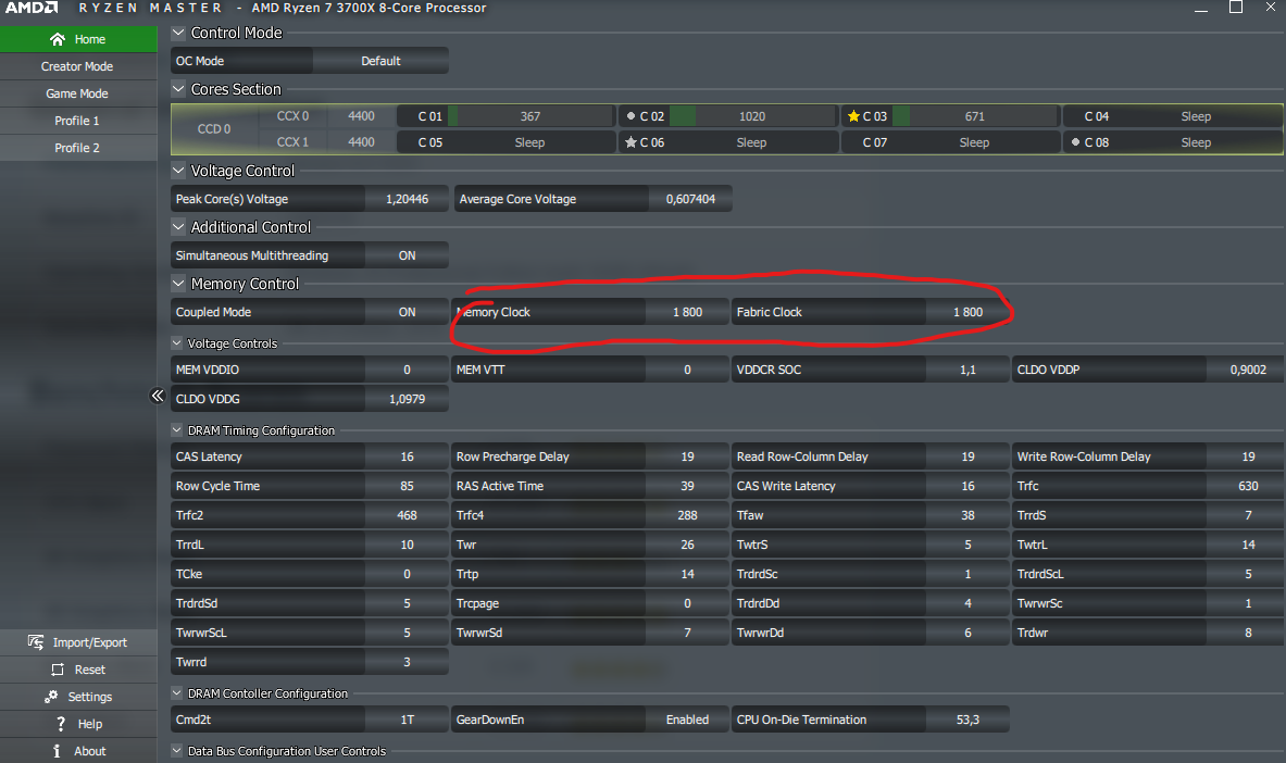 Teď běžím na 3600 při 1,45V a časování co nastavil sám docp. Ale při testech mi to píše menší frekvence. Nebo to tak má být?