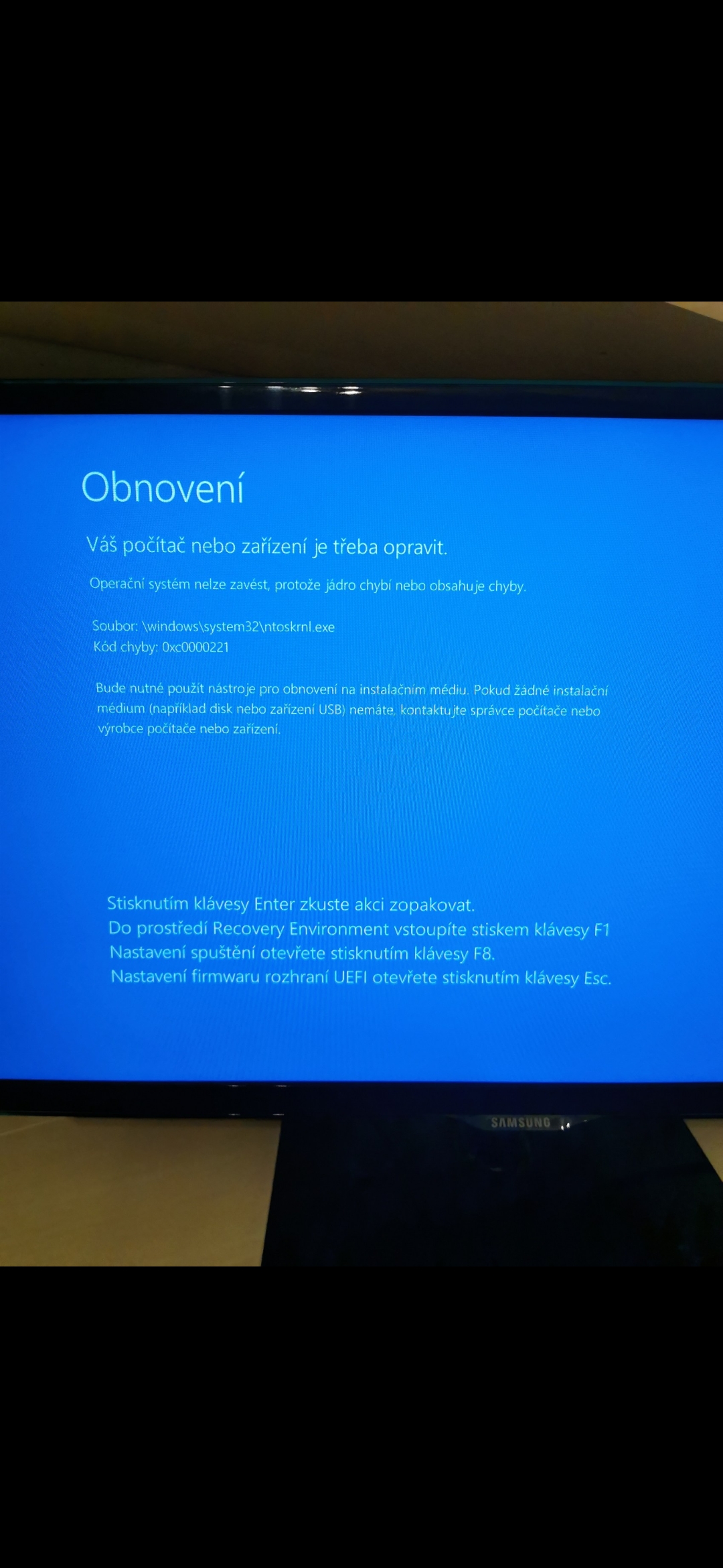 Ale po restartu modrá smrt "memory_management", do Windows se nedostanu. Chyba při každém restartu jiná. Viz foto.