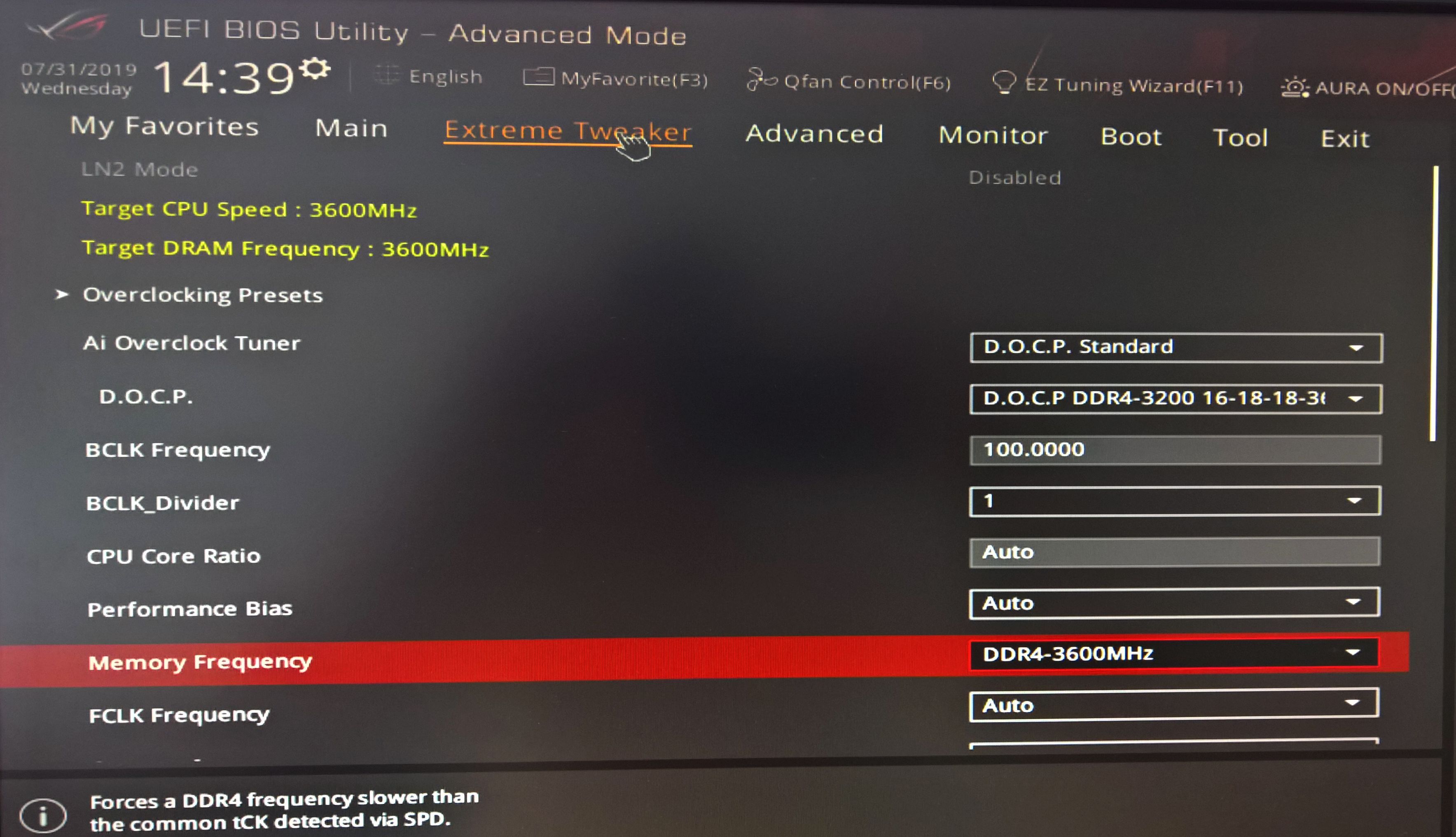 no tvl fakt stačilo při zapnutym DOCP (alias XMP) profilu nastavit jenom frekvenci na 3600MHz a volalá