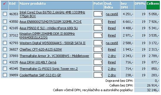 Lepší se mi zdá ta kombinace Intel Core2Duo E6750,deska Gigabyte,grafika X1950 Pro a zdroj Enermax.Na podporu SLI nebo C.Fire bych se vykašlal a časem (až budou hratelné DX10 hry) koupil jednu lepší grafiku.Třebas až nVidia 8800GTX spadne na poloviční cenu. Ono dvě slabší grafiky mají stejný výkon jako jedna silná a navíc udělají víc rámusu a spotřebují více energie nehledě na vyšší teploty ve skříni.