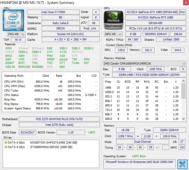 Procesor : Core i7 7700K - Původně byl v plánu levnější procesor 7700 bez K. Ovšem chytl jsem akci,kdy byl na alze Core i7 7700K za stejnou cenu jako obyčejný Core i7 7700 ,takže vlastně nebyl důvod nevyužít tohoto bonusu a v sestavě je tudíž tenhle procesor. Je to samozřejmě TOP herní procesor,takže jeho výkon ve hrách je nekompromisní a jeho osm jader a vysoká frekvence jsou zárukou toho,že nebude brzdit ani výkonnou grafickou kartu.