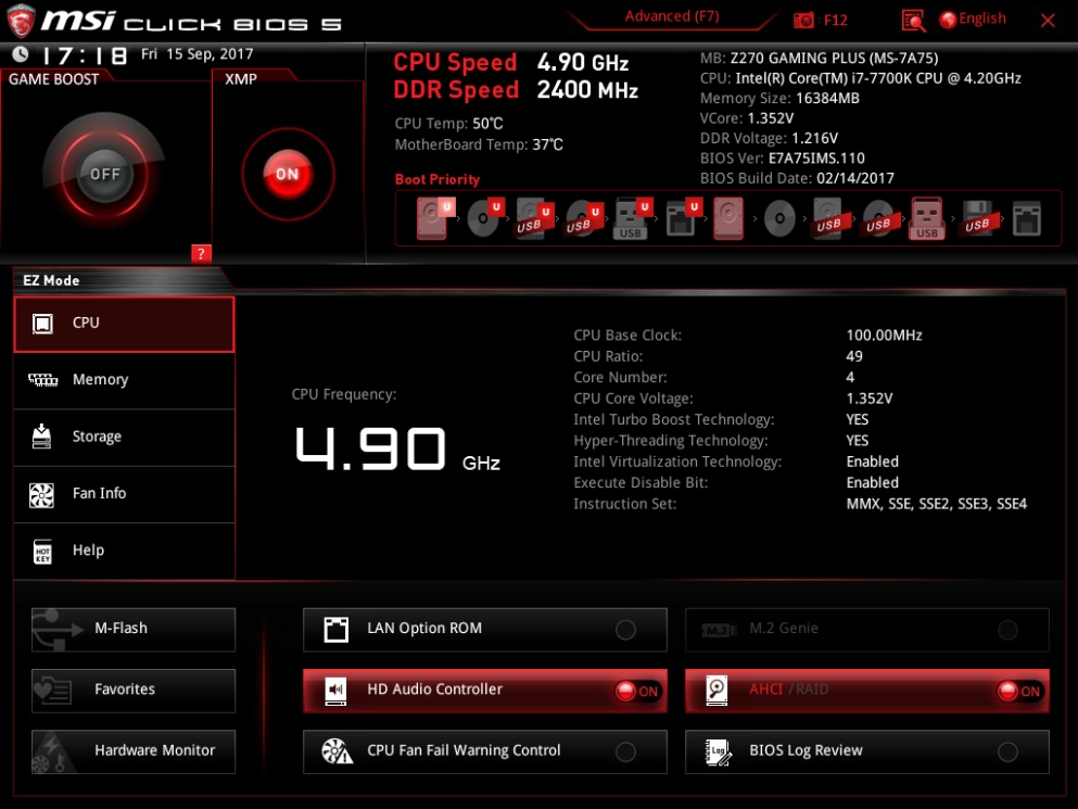 Základní deska : MSI Z270 Gaming Plus - Deska vhodná i pro taktování Káčkových procesorů.Nicméně hlavní důvod koupi zrovna téhle desky byla její červeno-černá kombinace s LED osvětlením.Nijak extrémně taktovat ani nebylo v plánu,takže opět není nuto připlácet za dražší desku.Tahle deska má dostatek konektorů až pro čtyři ventilátory.