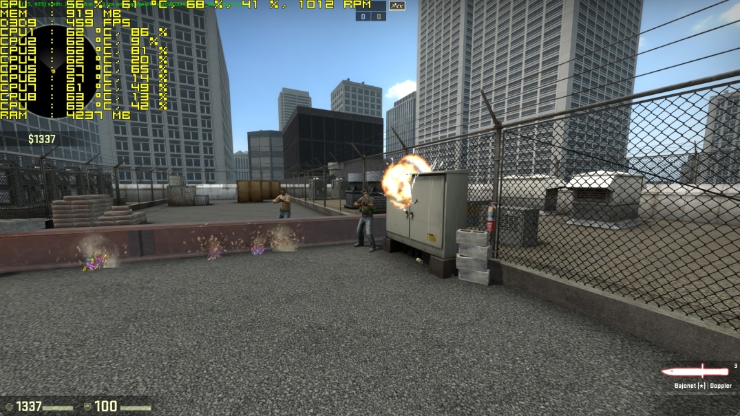 Tady samozřejmě nemůže být pochyb o výkonu grafiky a procesoru. Výsledných 459 FPS hovoří za vše. Samozřejmě v situaci,kdy je ve hře použit třeba kouřový granát,tak FPS spadne třeba na polovinu,ale přesto je to stále dost na rychlé hraní.