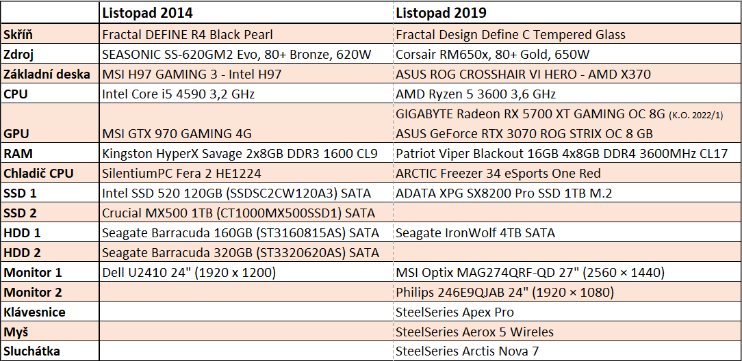 Mám dvě stávající sestavy, kde ugradovat bych chtěl tu z roku 2019 a z toho co zbyte, tak upravím tu z roku 2014.