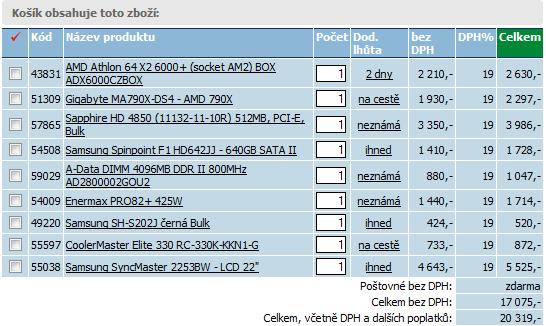 Tak jsem to s ním probral, a přál by si to trochu jinak. Chtěl by lepší procesor s tím že bude stačit 19 LCD panel a grafiku by rád nějakou GeForce. Cena sestavy může být tedy i trošku vyšší ale né zase o moc. Budu rád za každou radu. Od té firmy T.S.Bohemia.