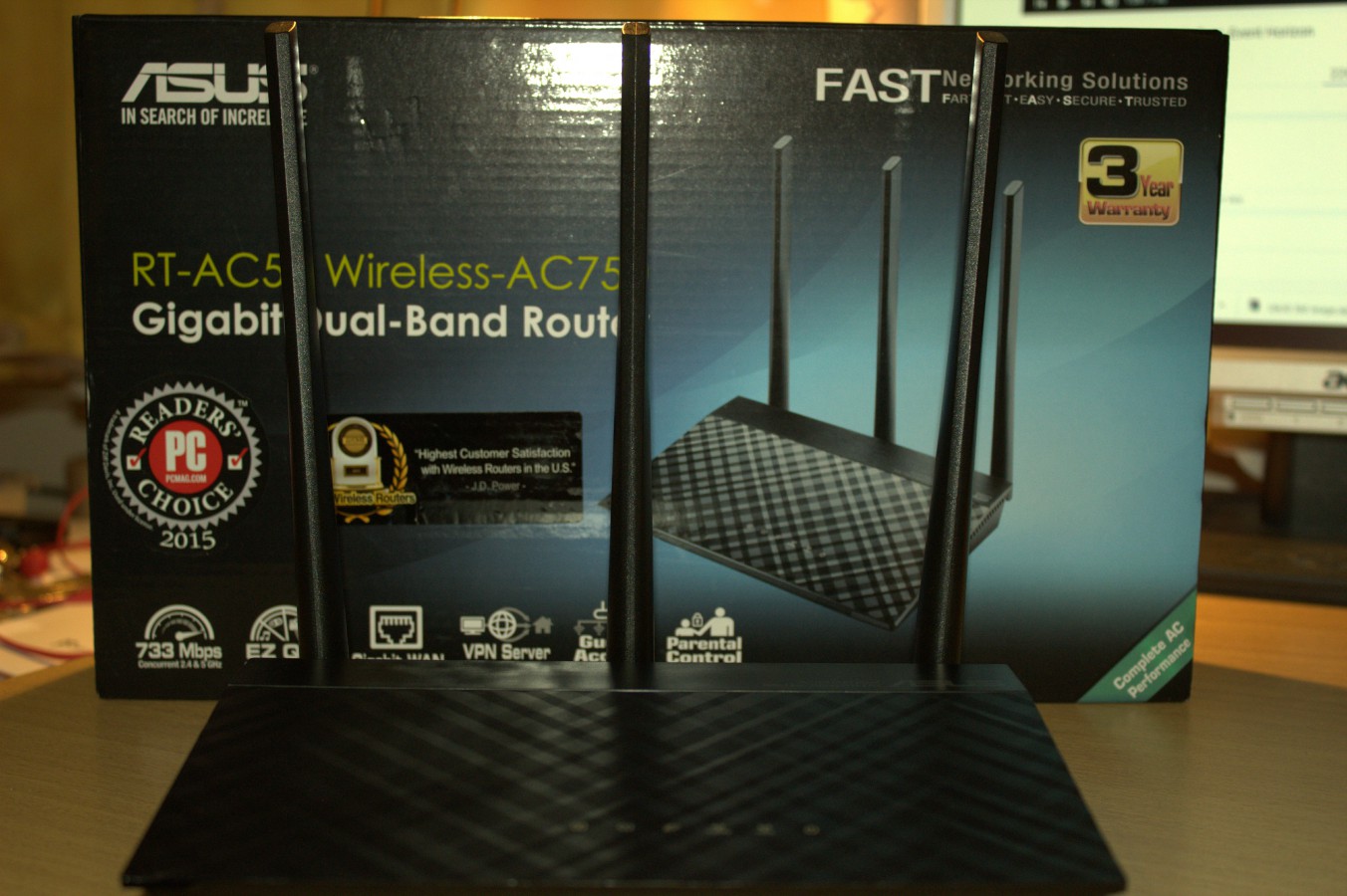 Při pohledu na krabici si jako první všimneme 3 leté záruky a 2 světových ocenění. Jedno od webu PCMAG.COM a druhé od J.D. Power.