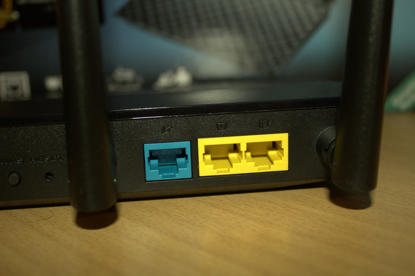 Mezi druhou a třetí anténou už pak jsou jen zbývající konektory, tedy 1x WAN port a 2x LAN porty.
