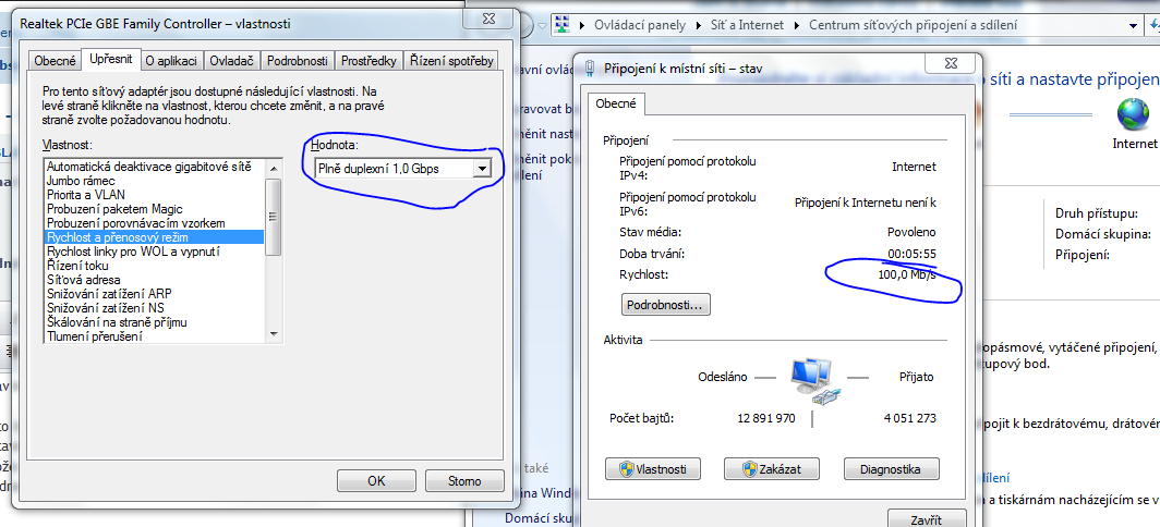 Změna rychlosti síťové karty 10Mbps -> 1Gbps síťovka RTL8168