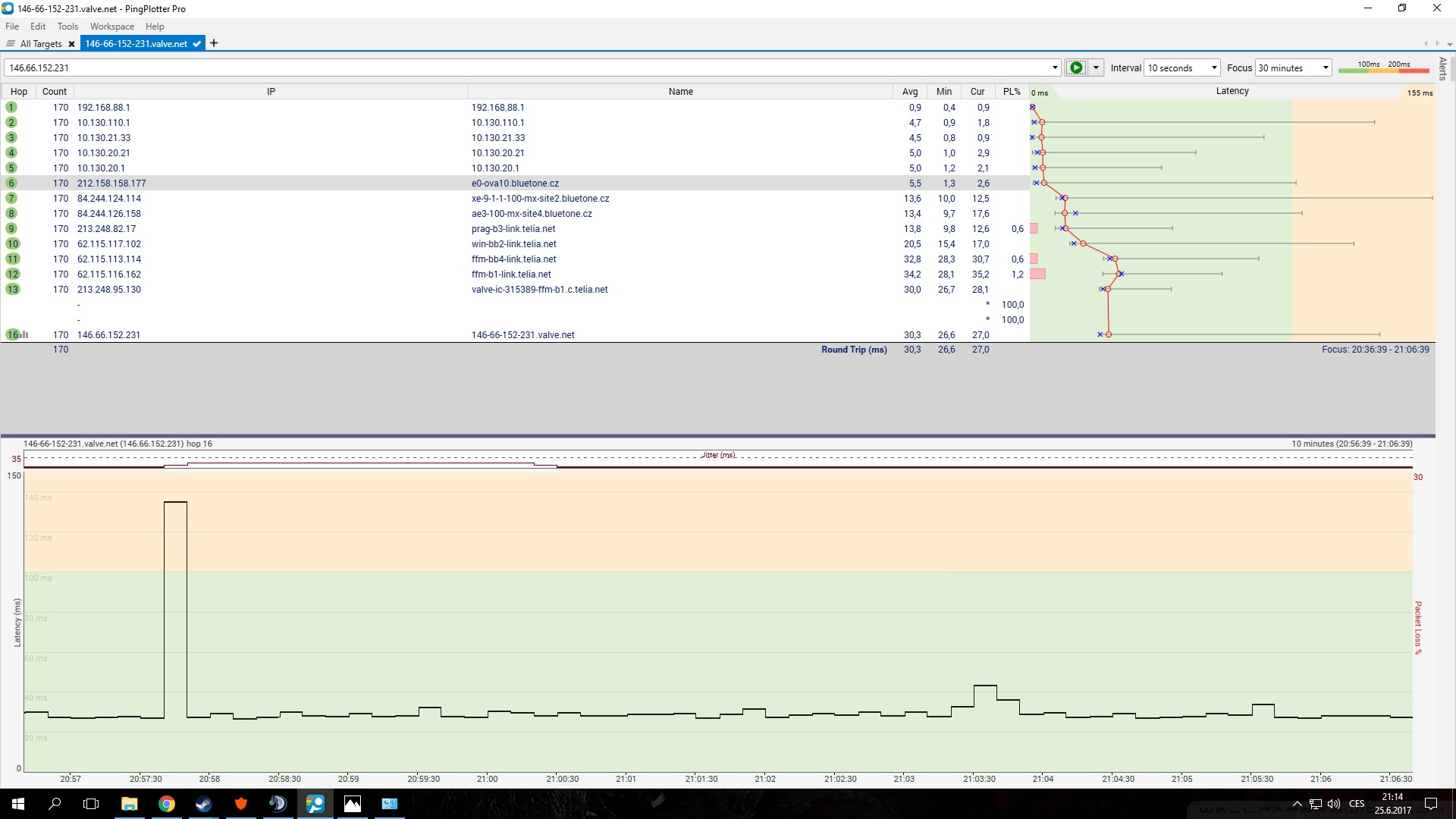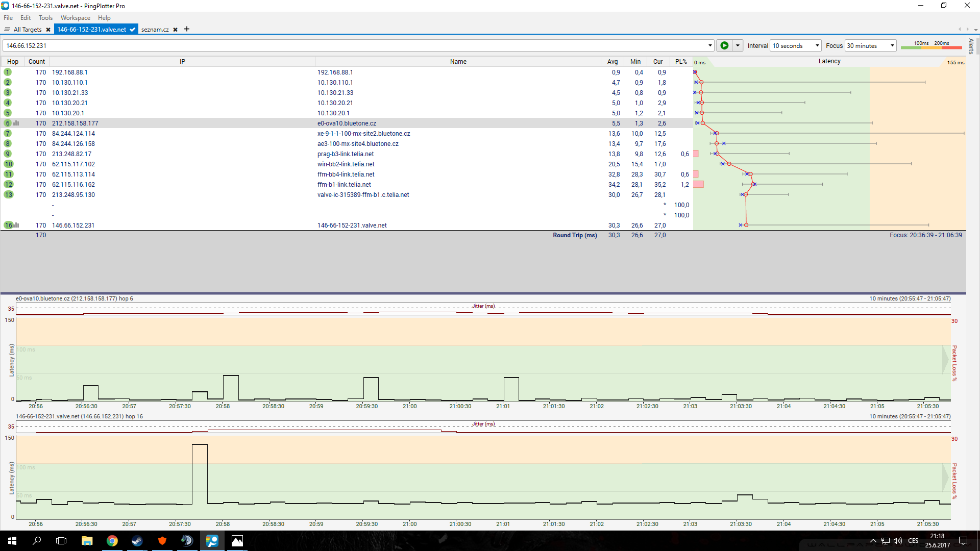 V mém podpisu najdeš návod na diagnostiku sítě. Budu potřebovat screen pingplotter, který vložíš sem.