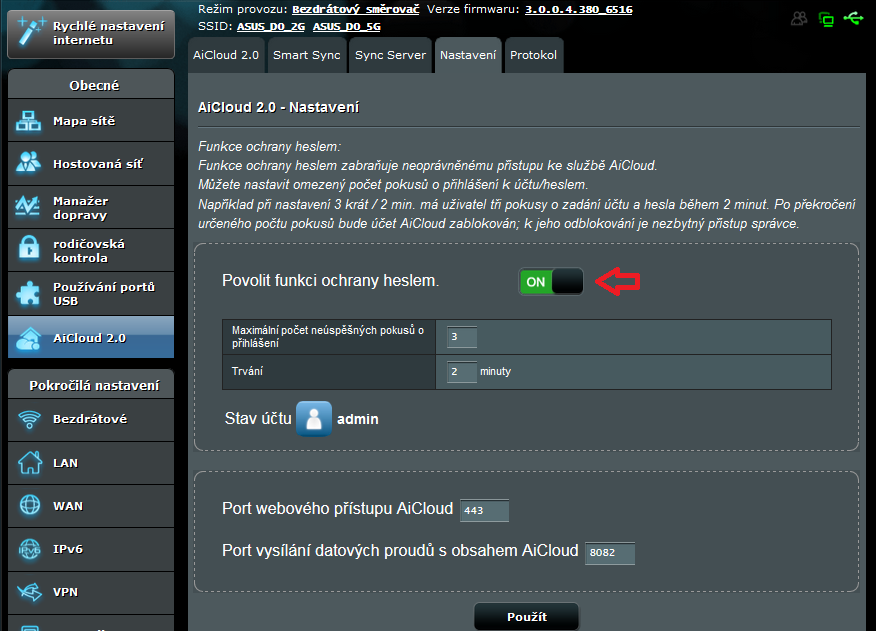 AiCloud - popis nastavení