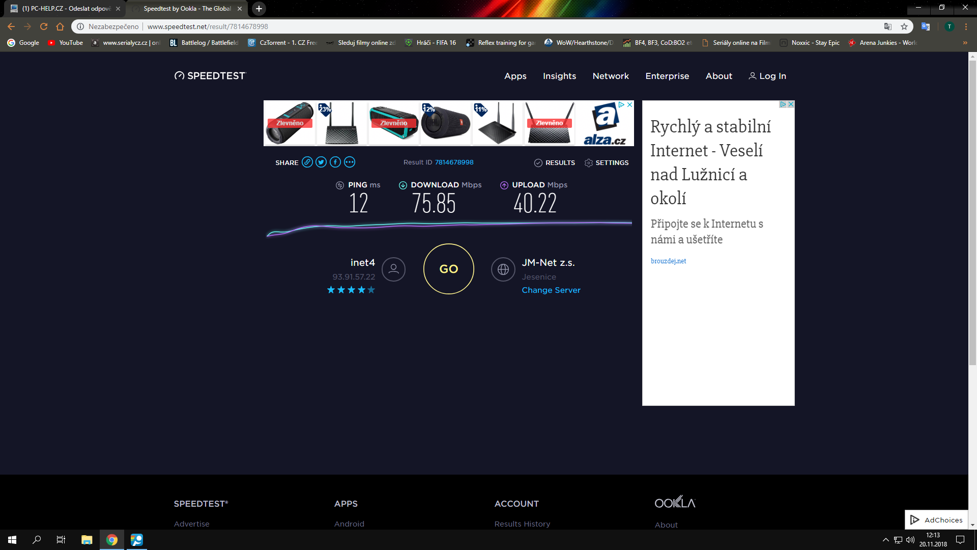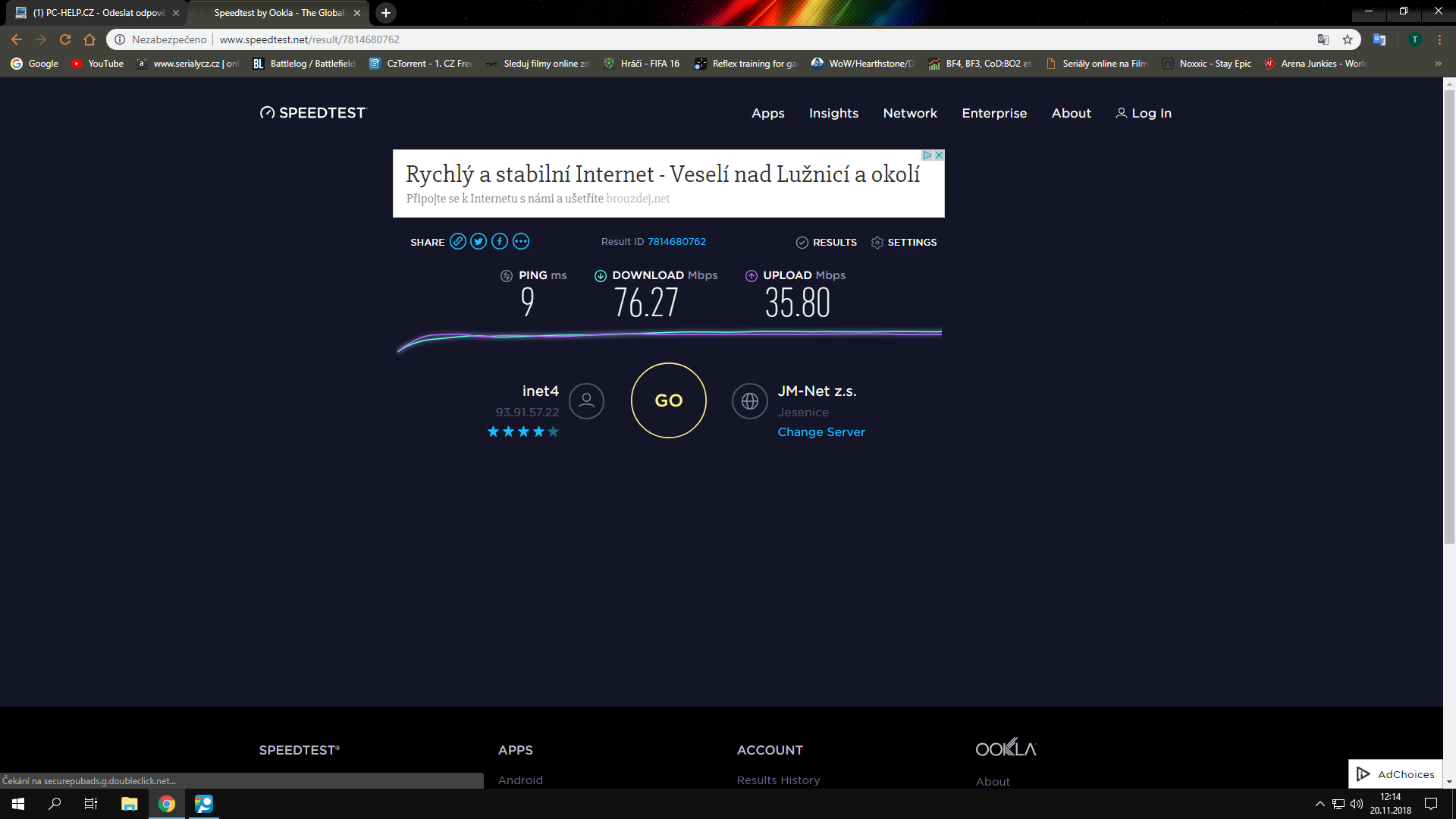 rychlost je ted o odost vyzsi prej tady dali neco noveho tak to bezi na max momentalne 70Mbps