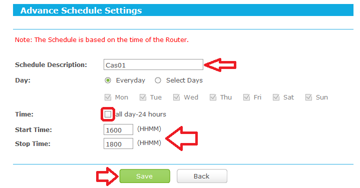 - Schedule. Zde si vytvoř pravidlo pro časové omezení - Host / Add New / Mode MAC address. Zde si zadej jednotlivé MAC adresy - Rule, zde si nadefinuješ pravidla.