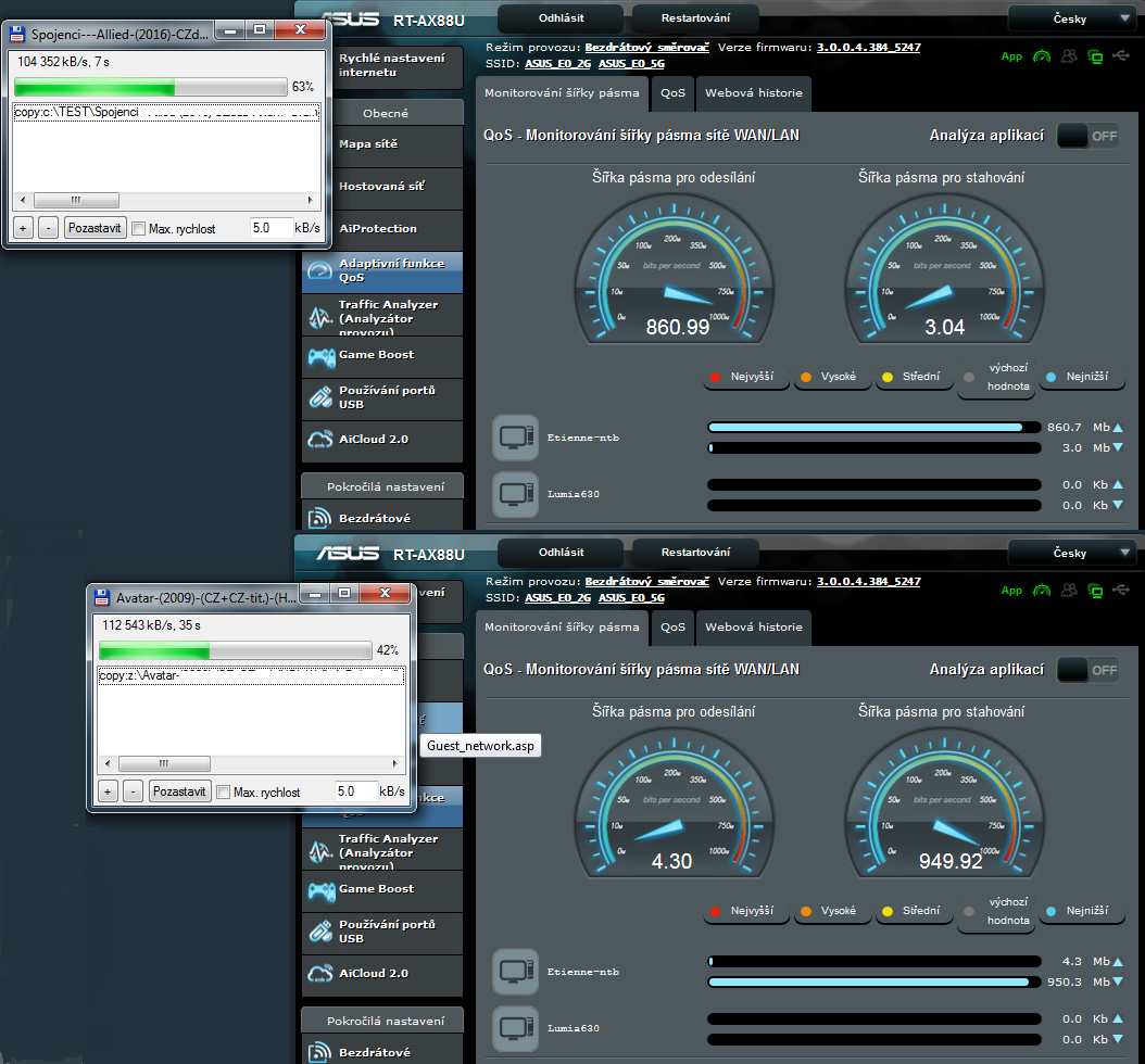A jak to dopadlo? Takto našlapaný router skutečně nezklamal - propust WAN/LAN přesáhla 100MB/s, což se jen tak nevidí.