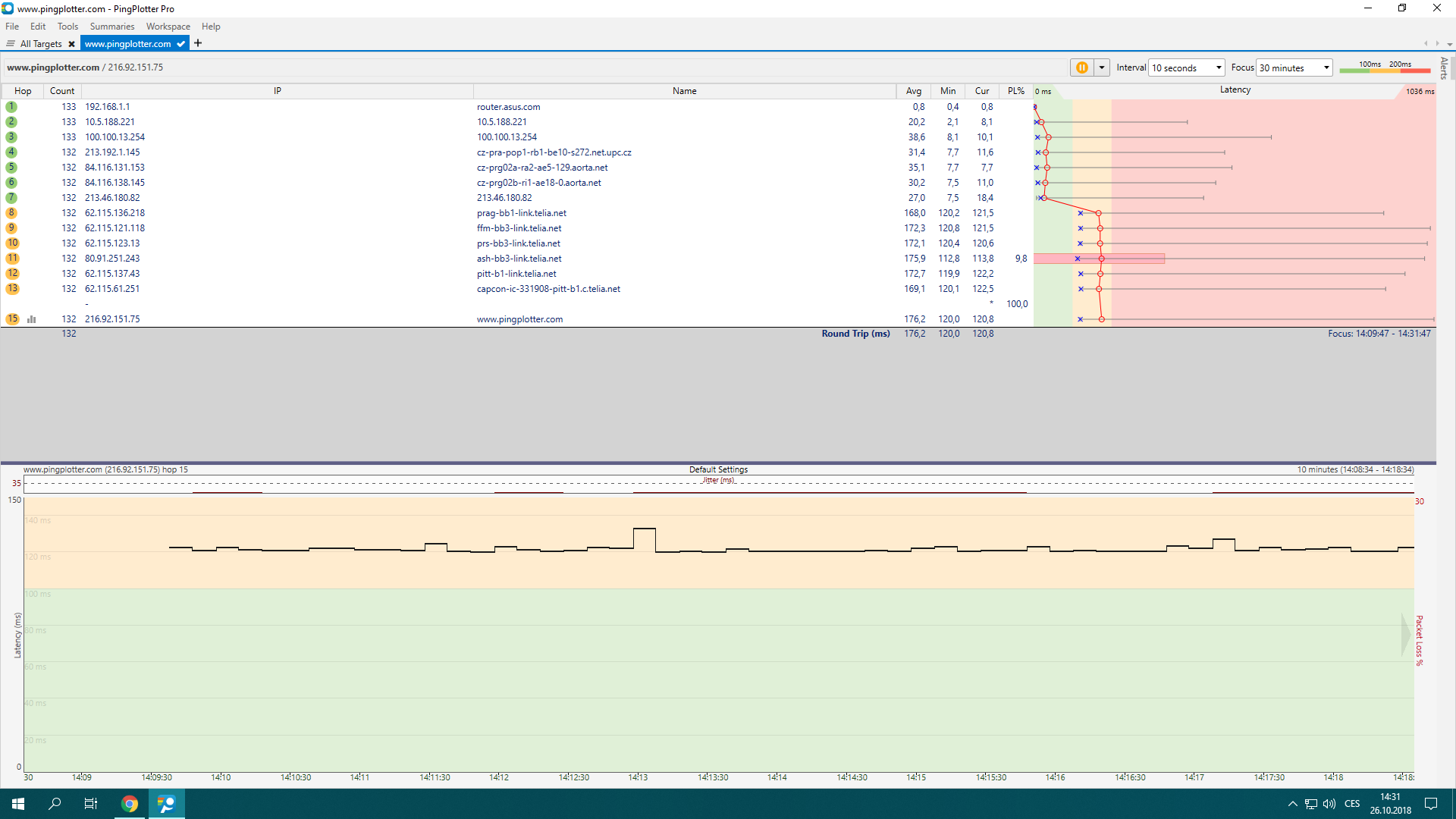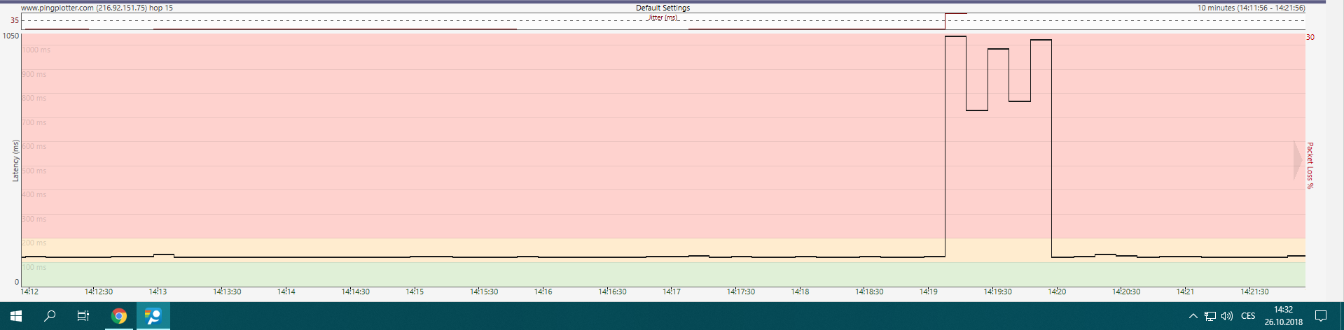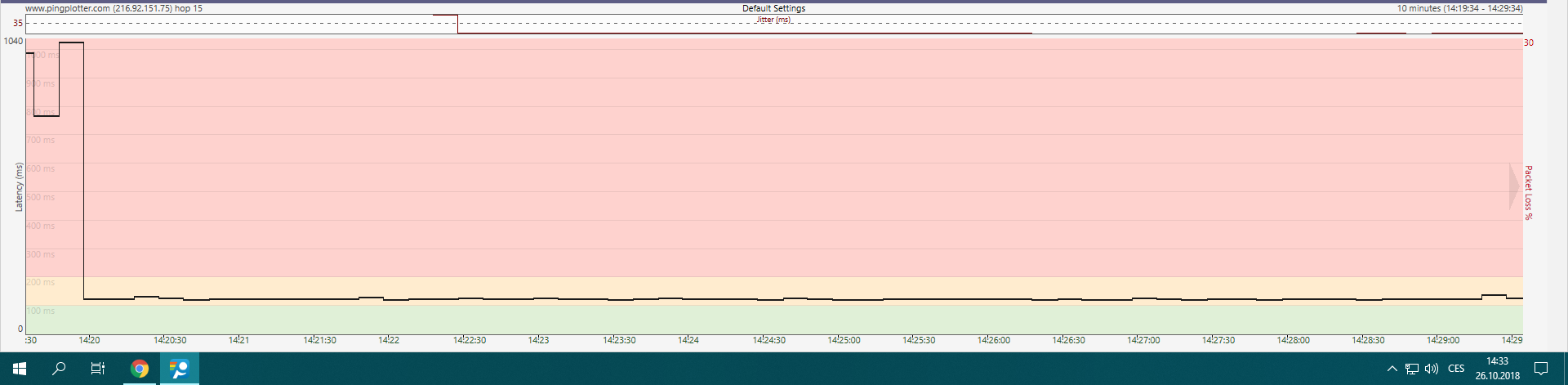 Sem vlož screen z programu pingplotter. Pingat ho nech aspoň 30 minut, ať je tam něco vidět.