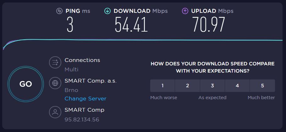 Ták,posielam ako to vypadá s novým routrom a som mega mega moc prekvapený, vôbec som nečakal také zlepšenie, úplne čumím, že ako to je možné. S nový routrom wifi cez 2 panelové steny, vzdialenosť medzi zariadeniami asi 10m a rýchlosť takmer 100/100.