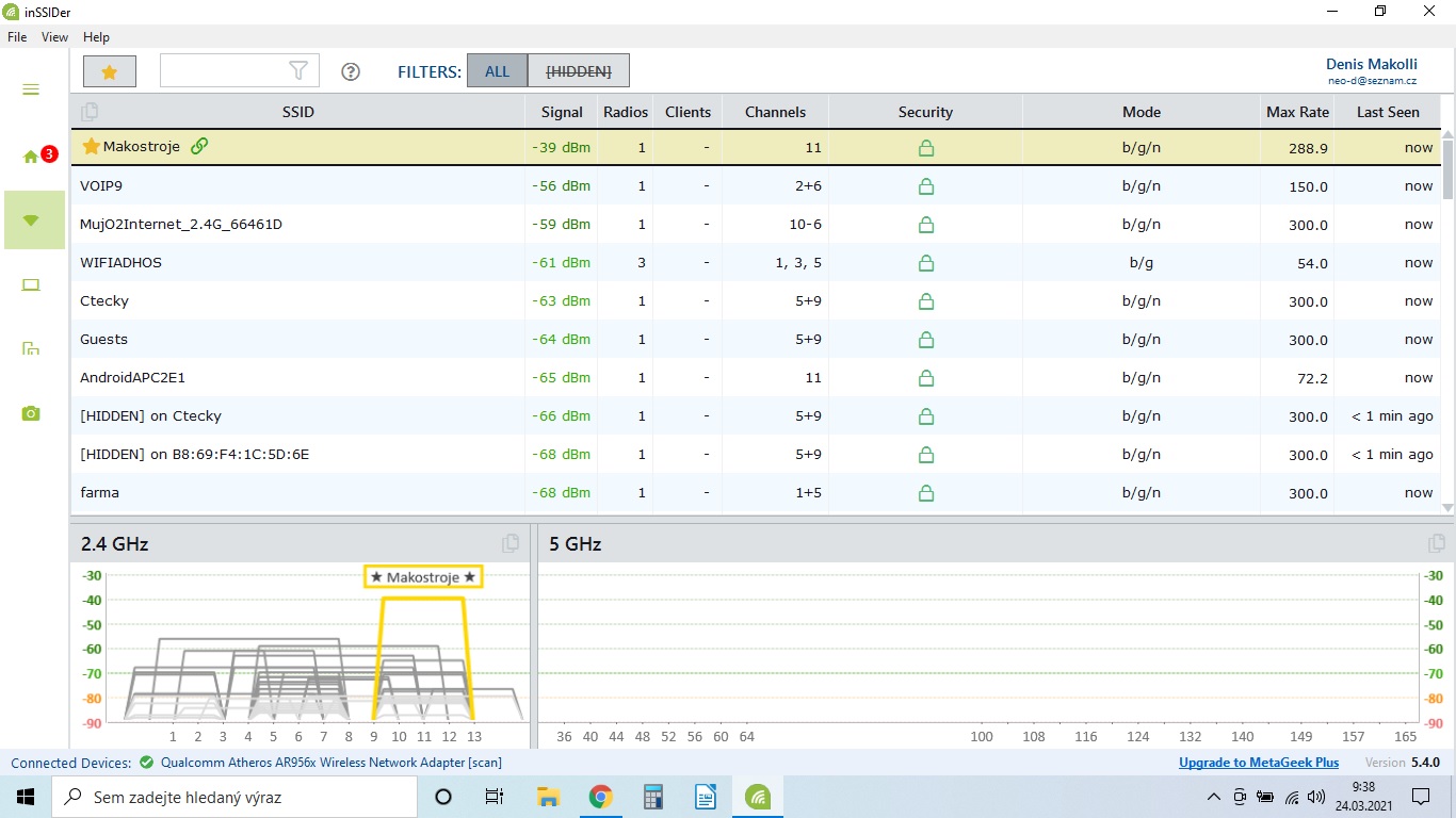 Zde je screen ze článku, který je v mém podpisu - Základní diagnostika WiFi: