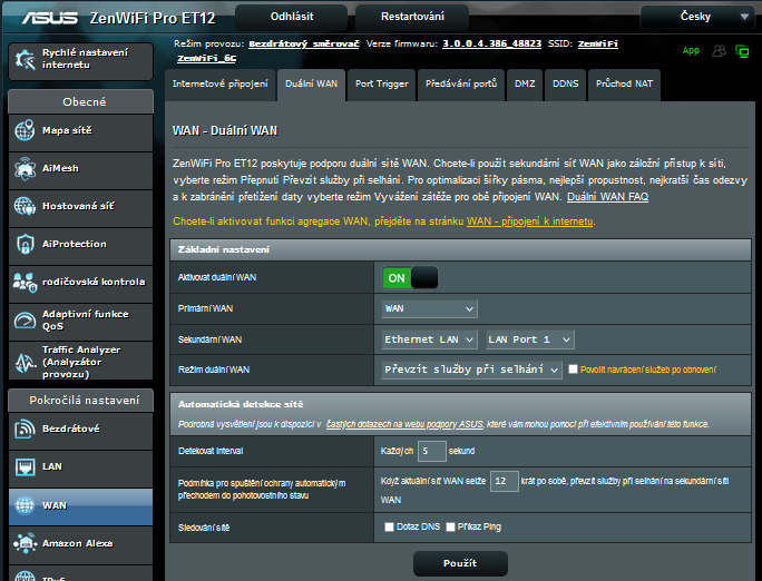 Nechybí ani záloha připojení pomocí duálního WAN: