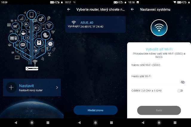 Instalace už jednodušší být nemůže - prostě si zvolíte, které ze zařízení bude hlavní, a k tomu připojíte internet do WAN portu. Druhé zařízení zapnete někde v prostoru (Asus v manuálu doporučeje vzdálenost do tří metrů, ale zařízení se najdou i na delší). Router můžete nastavit i přes aplikaci v mobilu.