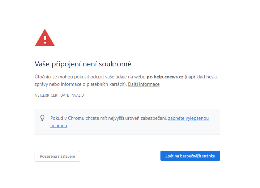 Vaše připojení není soukromé (pchelp)