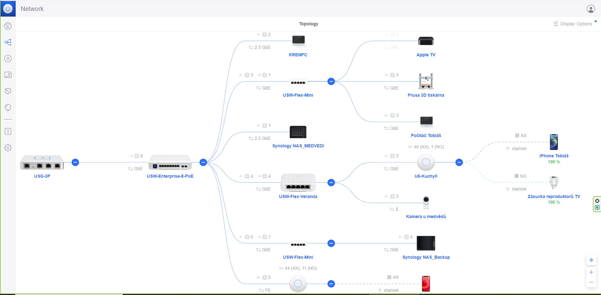 Tak nakonec jsem byl s tou výměnou routeru úspěšný a ani to tak nebolelo, jak jsem si původně myslel. Teď už mám celou domácí síť pod palcem v Unifi Controlleru včetně toho vyměněného routeru :-) . Pro zajímavost přikládám obrázek topologie mé sítě. Odborníci by asi měli k mé síti výhrady, ale já jako laik jsem spokojený. Všem odpovídajícím děkuji za povzbuzení - opravdu to nebylo nic složitého. Nakonec jsem ani nemusel v routeru klonovat mac adresu, protože jsem ji jednoduše přidal jako povolenou v modemu 5G antény (naštěstí mám do nastavení modemu přístup).