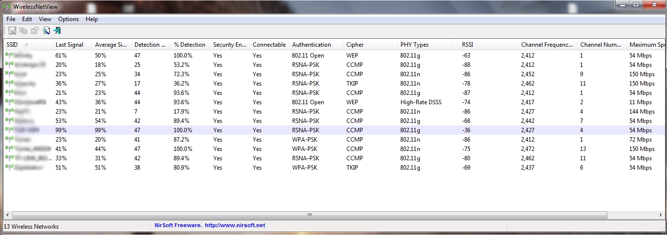 poslední dobou mám docela problémy s internetem, a myslím si že to bude způsobeno rušením od ostatních. Jsem v paneláku a chytám 13 sítí a všechny jedou na 2.4 Ghz takže je to špatný. Tady mám screen z programu kde jsou vidět i kanály ostatních :