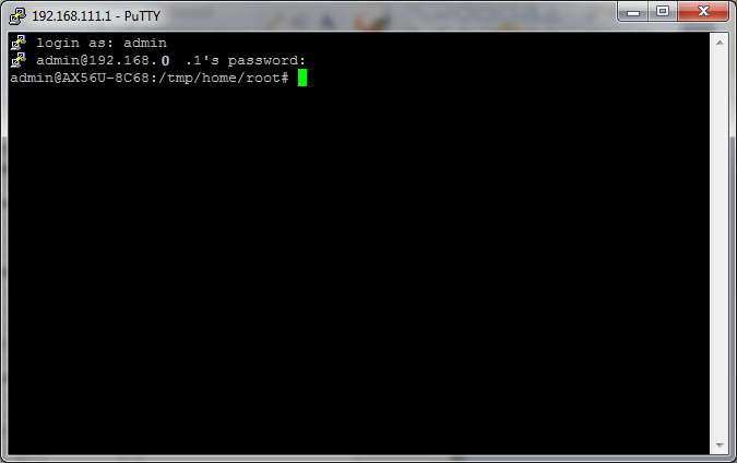 Zobrazí se úvodní okno: Vyplníš IP adresu (červený rámeček), pohlídej, ať je zatrženo SSH a klikni na Open. V případě, že je vše OK, zobrazí se přihlašovací dialog: Pokud jsi nic neměnil, tak jako user zadej admin (a enter), jako password (heslo) zadej admin (a enter). Pozor - když budeš psát to heslo, nebude se zobrazovat - to je vlastnost. A jestliže se zobrazí korektní přihlášení, tak zadej příkaz reboot.