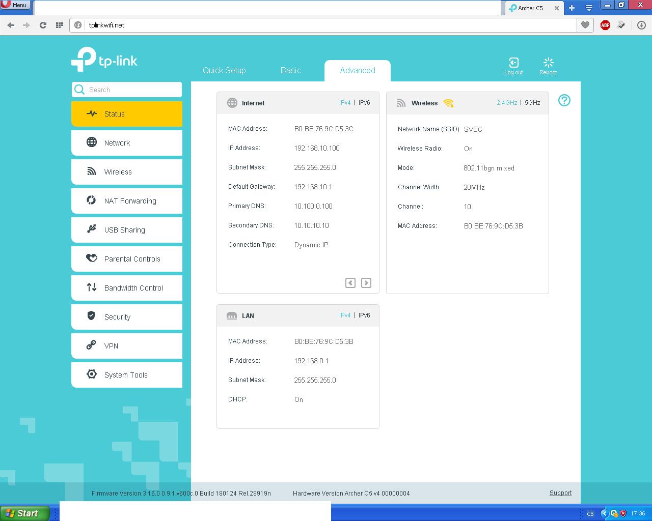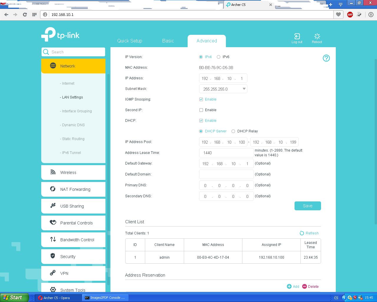 V Network/LAN nesmí být 192.168.10.1! Můžeš klidně nechat výchozí 192.168.1.1