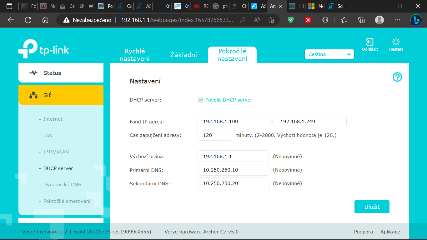 Dále screen nastavení DHCP.