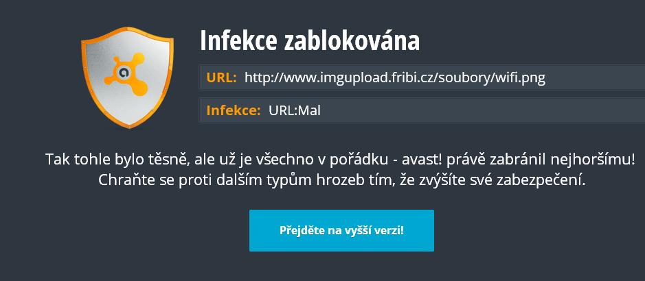 Jinak blokován antivirem je ten přiložený obrázek, čili tam někde je infekce.