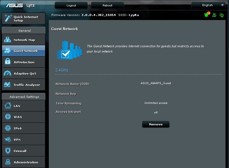 A pokud by vám toto jednoduché nastavení nestačilo, pak lze Lyru konfigurovat i ručně. Samotné grafické rozhraní je velice podobné rozhraním, jež znáte z Asus routerů. Nicméně tentokrát na češtinu zapomeňte. Úvodní strana ukazuje počet připojených klientů, stav, hlášení o připojovaných bodech atd.
