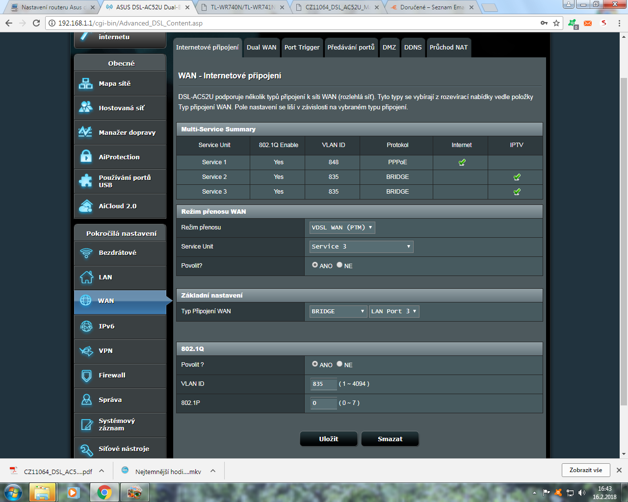 1. Podařilo se mi rozchodit pouze jednu TV, vůbec nevím jak mám nastavit druhý port lan do režimu tv. V manuálu, na stránkách výrobce i všude jinde na internetu je v záložce LAN-IPTV úplně jiná nabídka než mám já. Myslím že to bude nějaká aktualizace nebo tak něco.