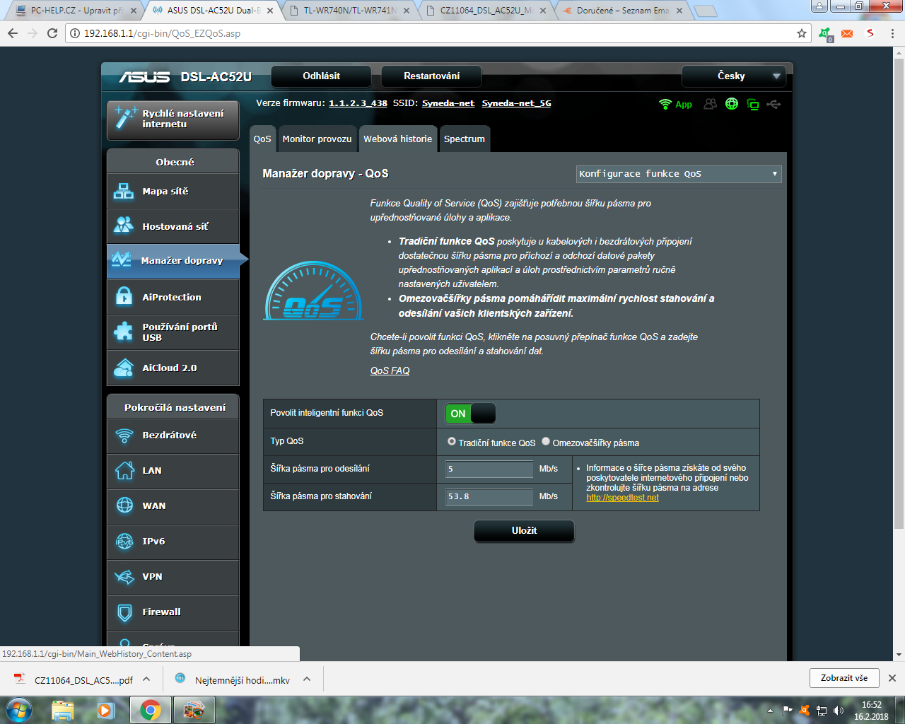 V pondělí budu ještě volat na podporu ASUS jestli mi něco poradí. To se starou verzí fw mě taky napadlo, jako poslední možnost to můžu zkusit. Gigabitová síť je v plánu, to je jeden z důvodů proč jsem vyměnil router.