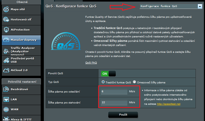 2. Jak nastavit QoS aby byly upředňostňovány TV a MMC?