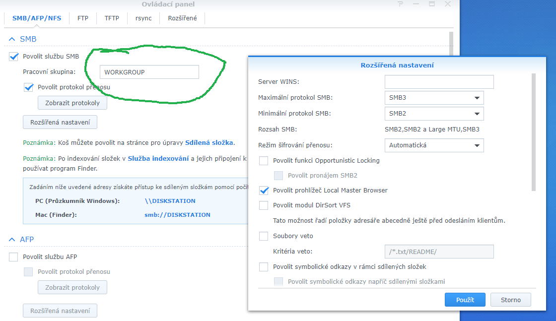 Nicméně vše fungovalo a NAS byl přístupný a vidět, NetBios jel v pořádku, dokud jsem jel na Samba1. Po přepnutí na Samba 3 prostě NetBios nefunguje.