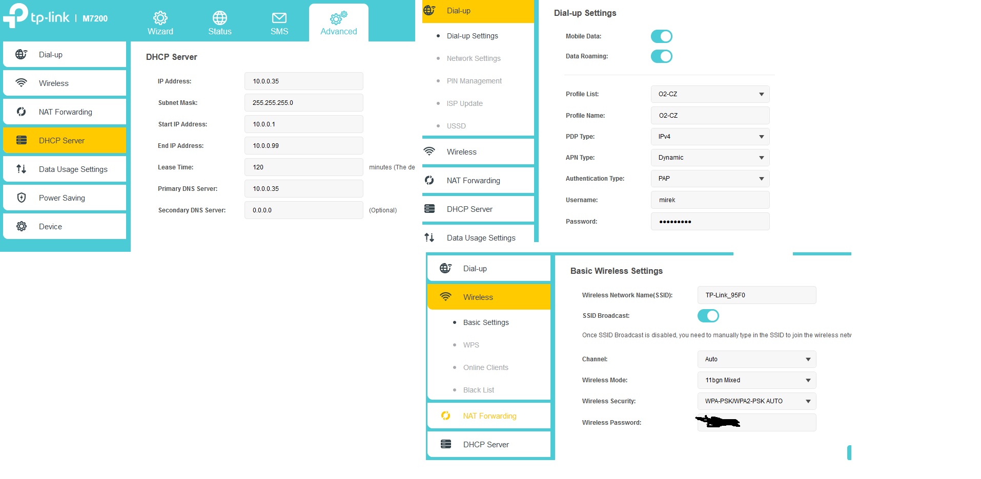 Přikládám obrázky nastavení na webovém rozhraní.