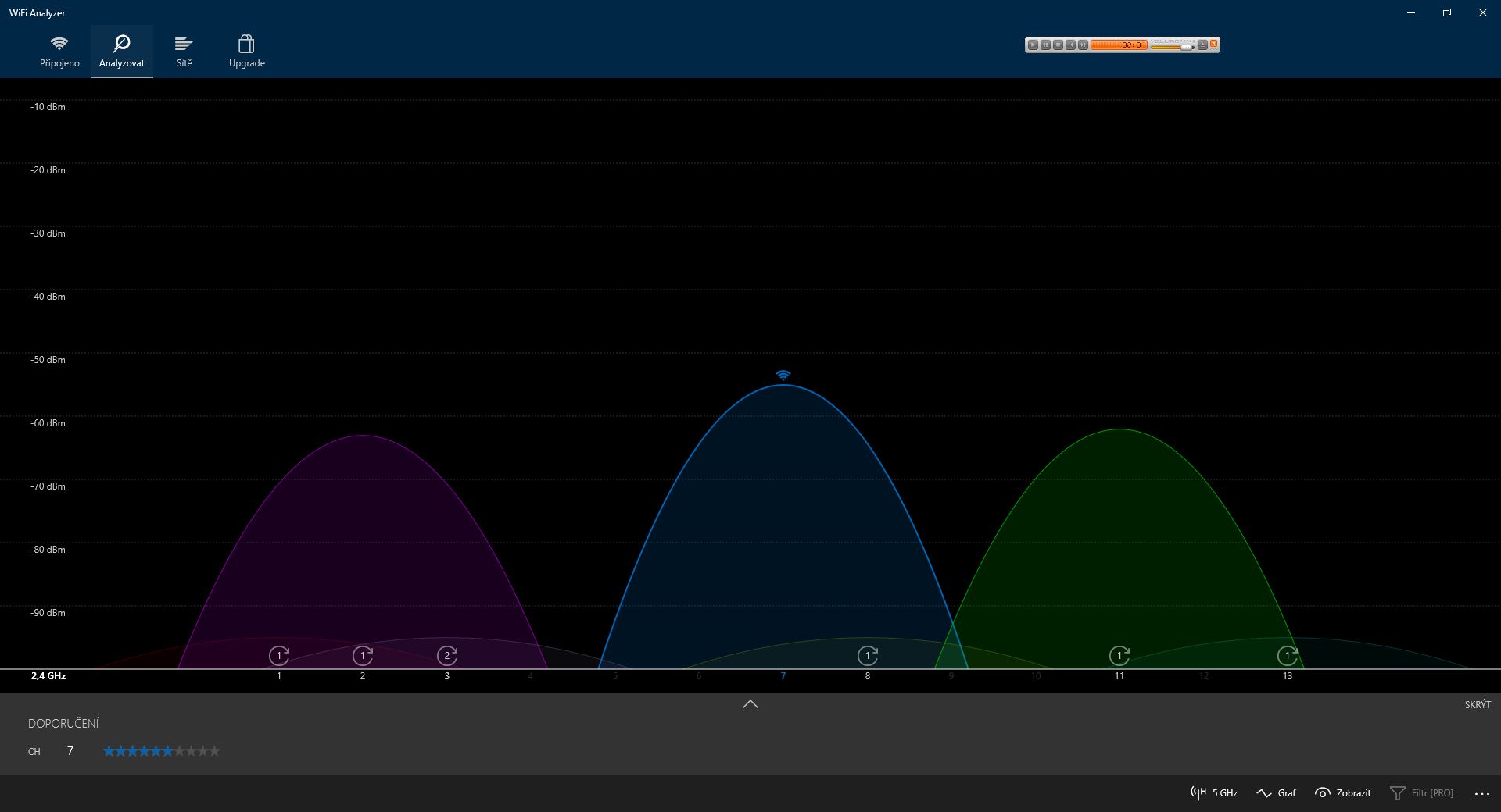 na ty kanály můžeš použít WiFi Analyzer zdarma z Microsoft storu, hezky ukáže "rozmístění" sítí na danejch kanálech i jejich sílu...