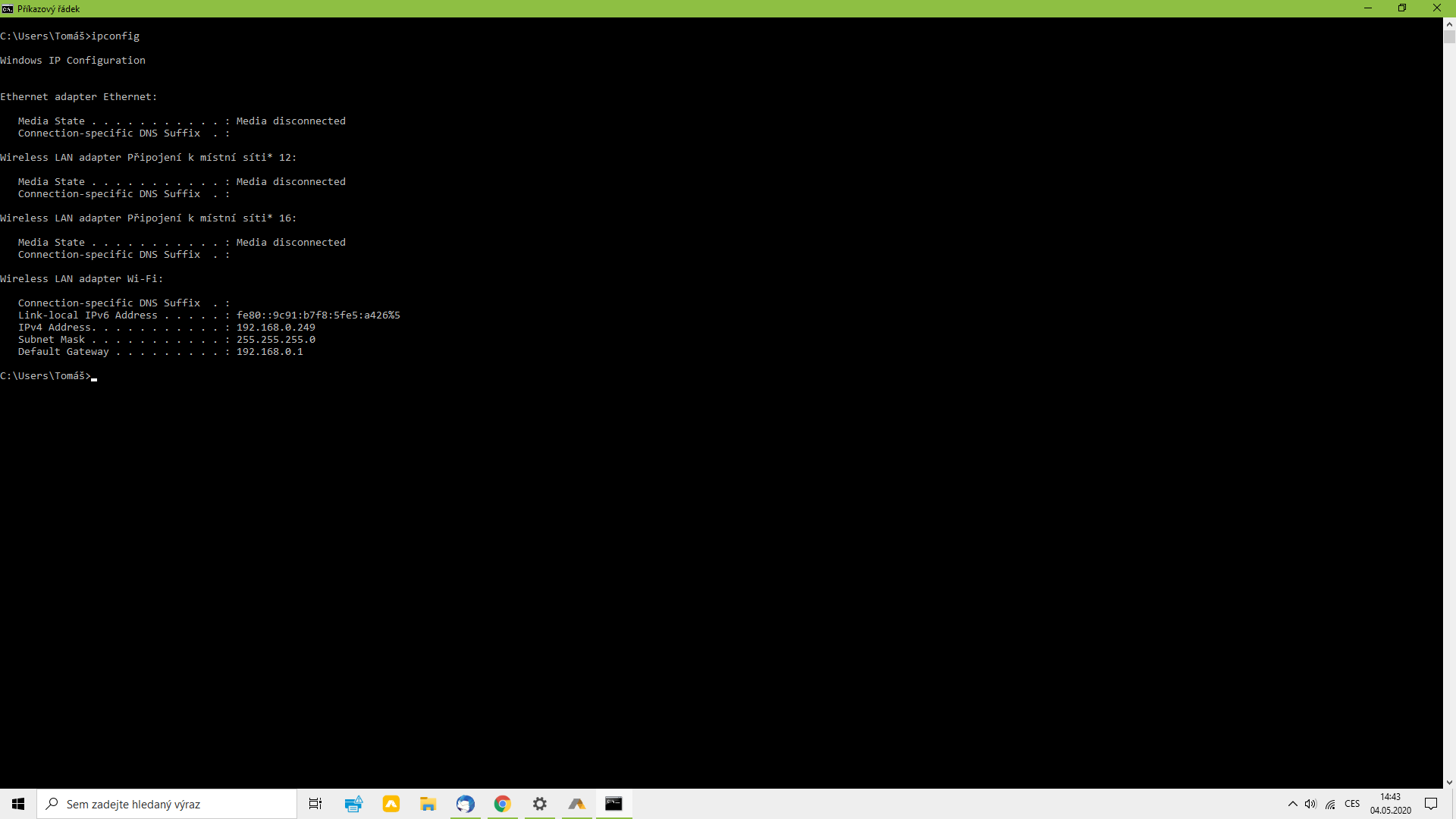 Dodatečně připojuji screen ip configu z příkazového řádku: