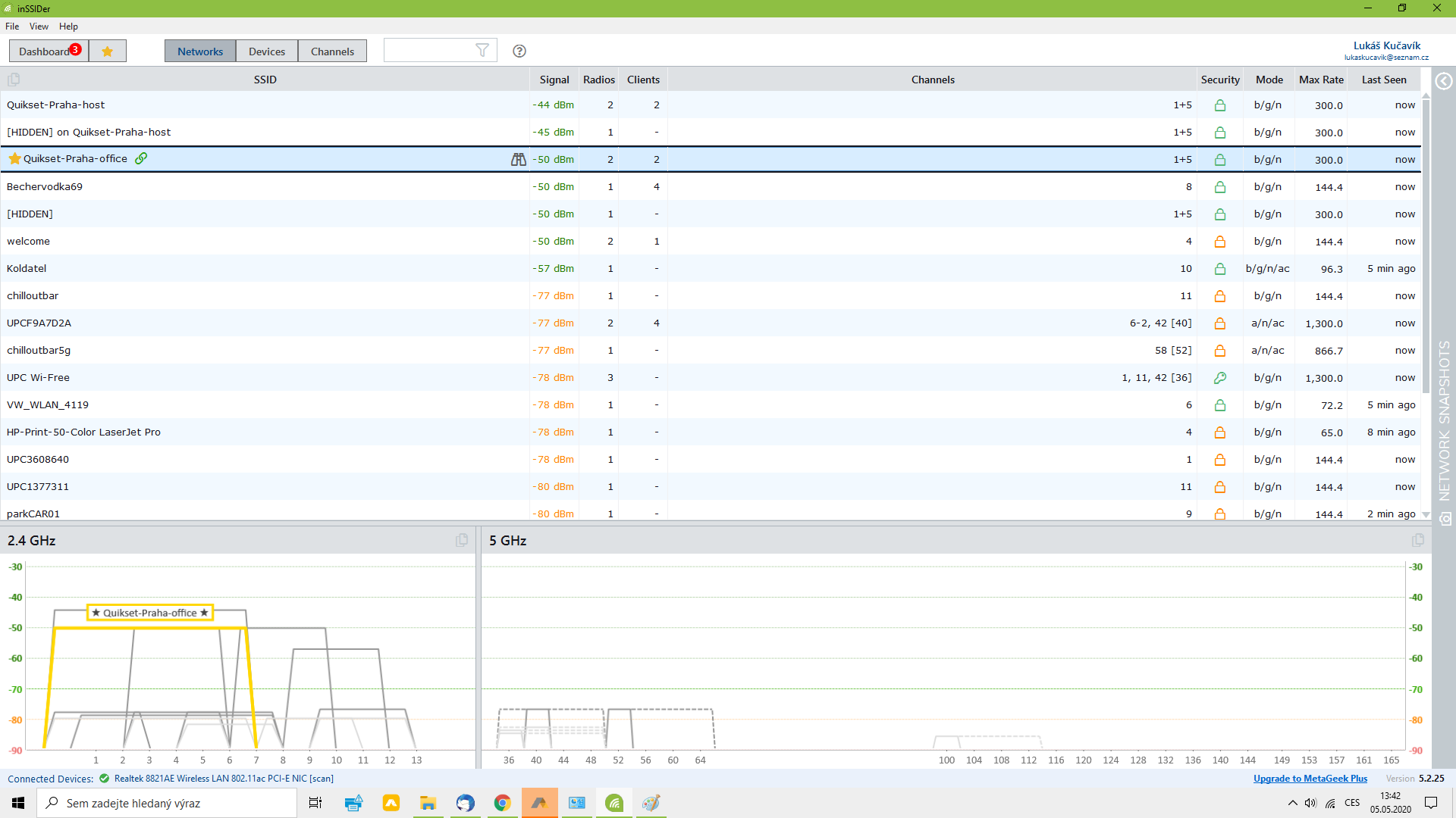 Zítra se pokusím nakonfigurovat router a počítač na pásmo 5Ghz.