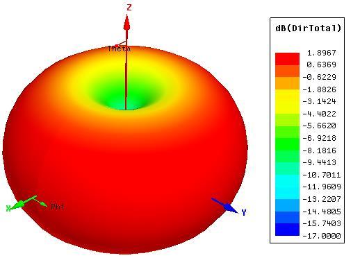 Každá anténa má nějaký vyzařovací diagram. Klasický "prut" září na všechny strany stejně. Takže jeho charakteristika vypadá nějak takto: