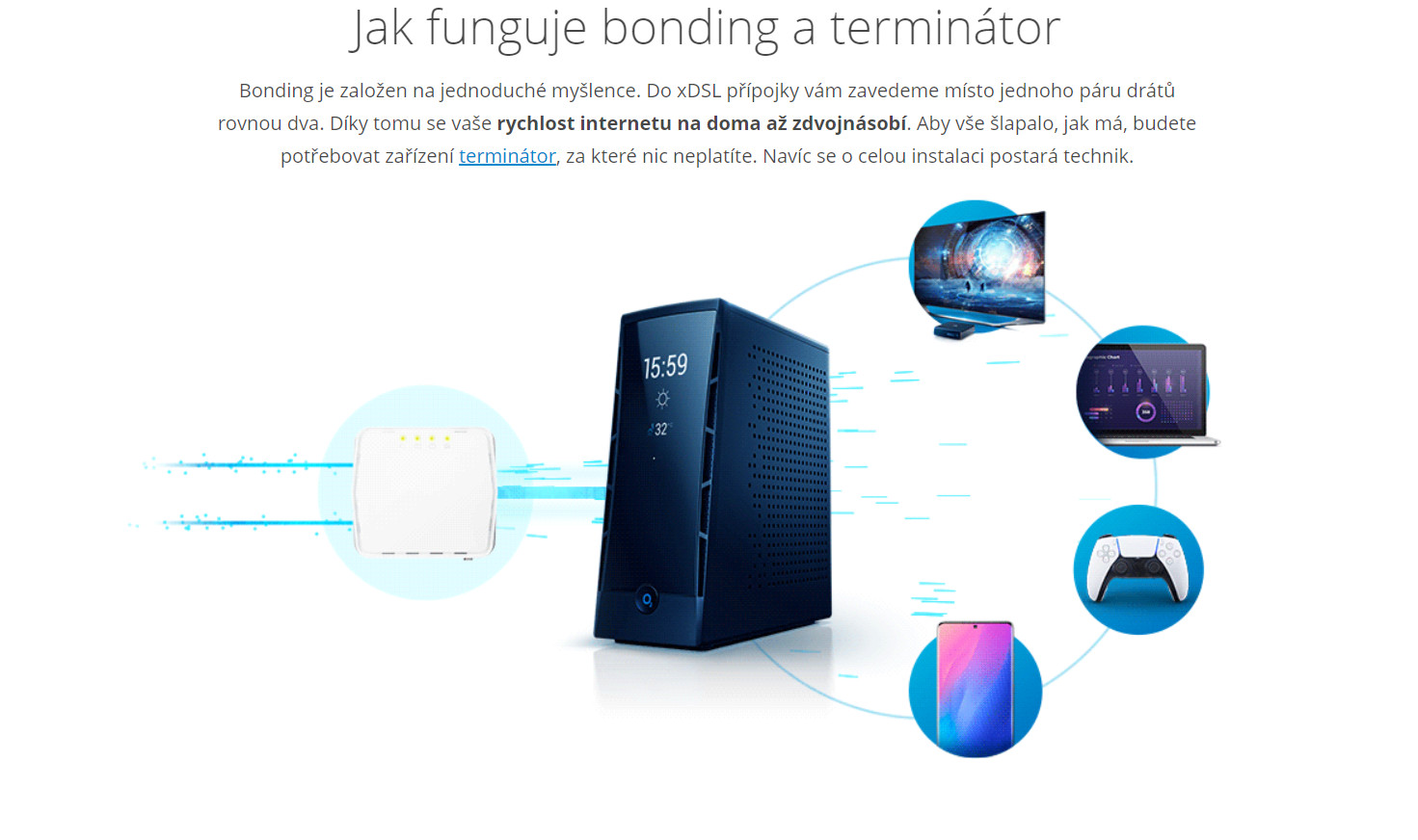 1) Zatím jedu po modemu v květnu budu mít terminátor a za terminátorem má být vhodný router