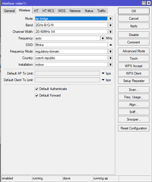 Mám nastavené stejné SSID a security profile na obou wlan portech. Bridge nastavený na všechny porty.