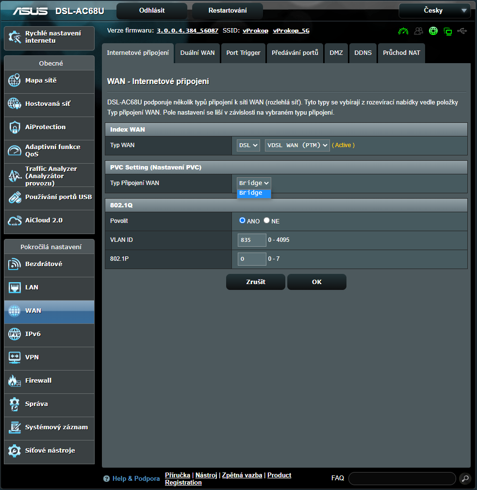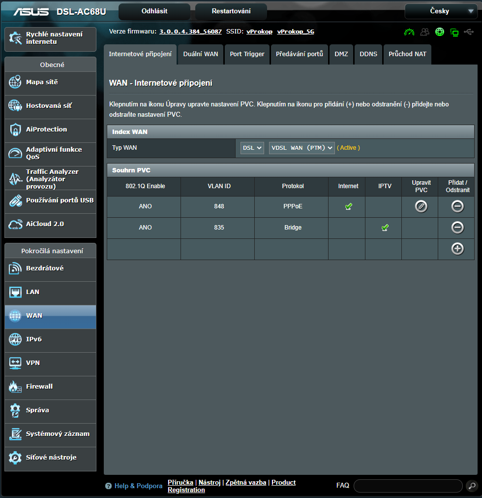 rad bych se zeptal, zda-li by mi nekdo byl schopny poradit s nastavenim O2TV pres VLAN na tomto routeru. Sel jsem podle navodu (vicemene), nicmene nektere polozky zminene v navodu na mem zarizeni nejsou. Tak ci tak, pouzil jsem tento navod: https://www.asus.com/cz/support/FAQ/1043266/